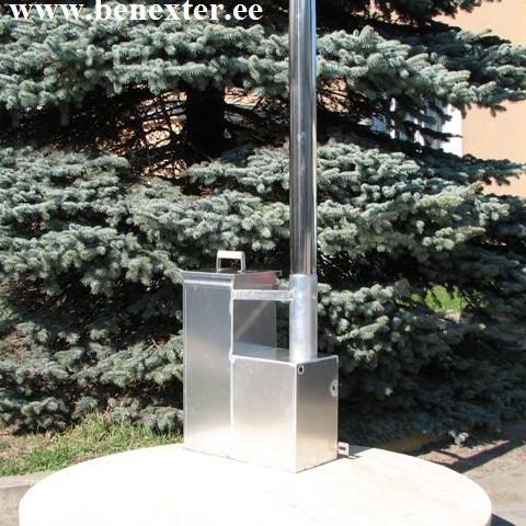 Kaminassa on 6-metrinen kiertoputki palopesän läpi, joilla tehostetaan lämmön siirtoa veteen. Vesi lämmitetään +37c asteeseen. Lämmitin on kannella ja ilmanottopeltilla, mukana myös 2-metrinen rosterinen savupiippu hattulla ja rosteripultit kiinnitystä varten.