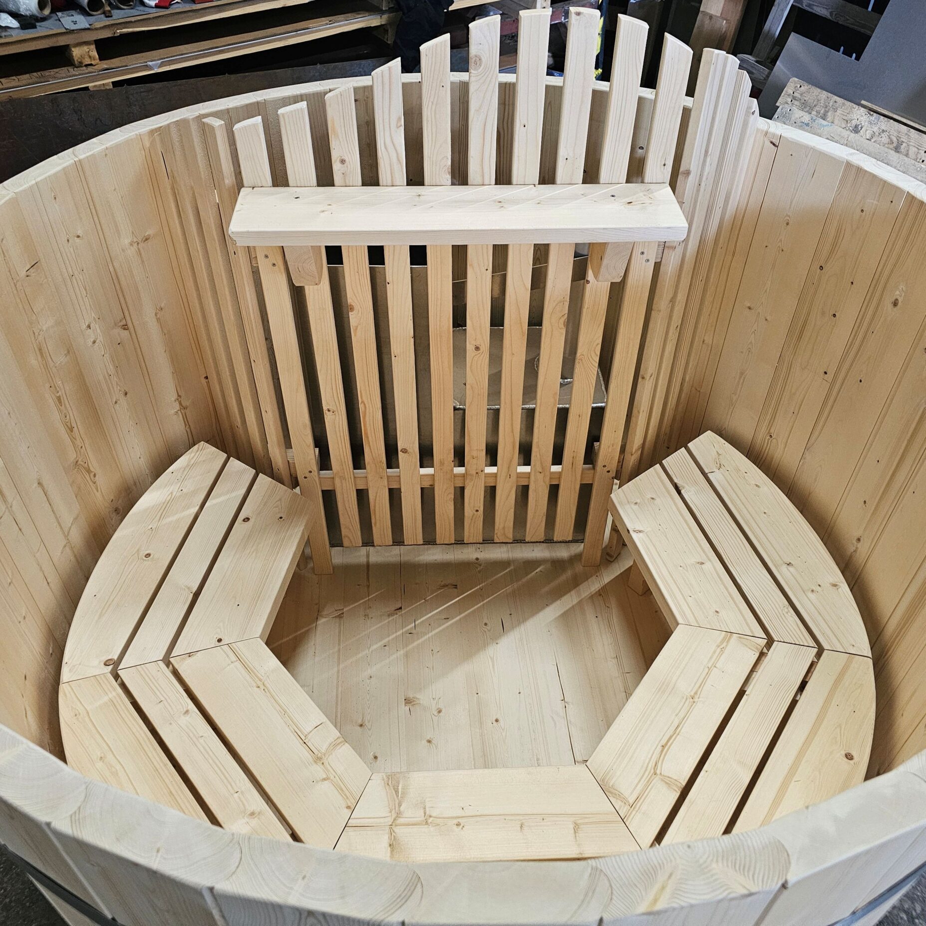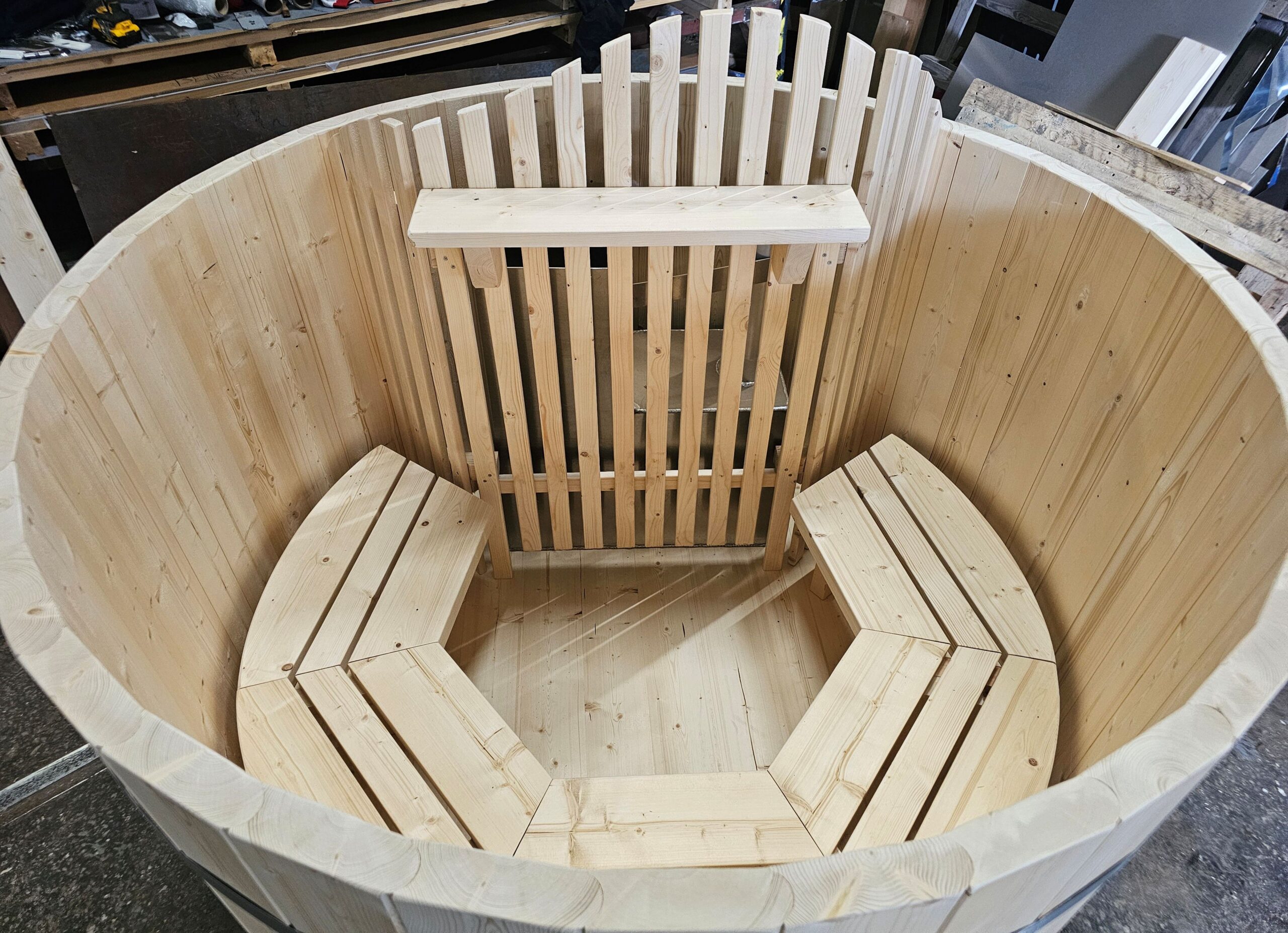 - Massiiviset kaarevat penkit, tynnyrissä on enemmän istuinpintaa;