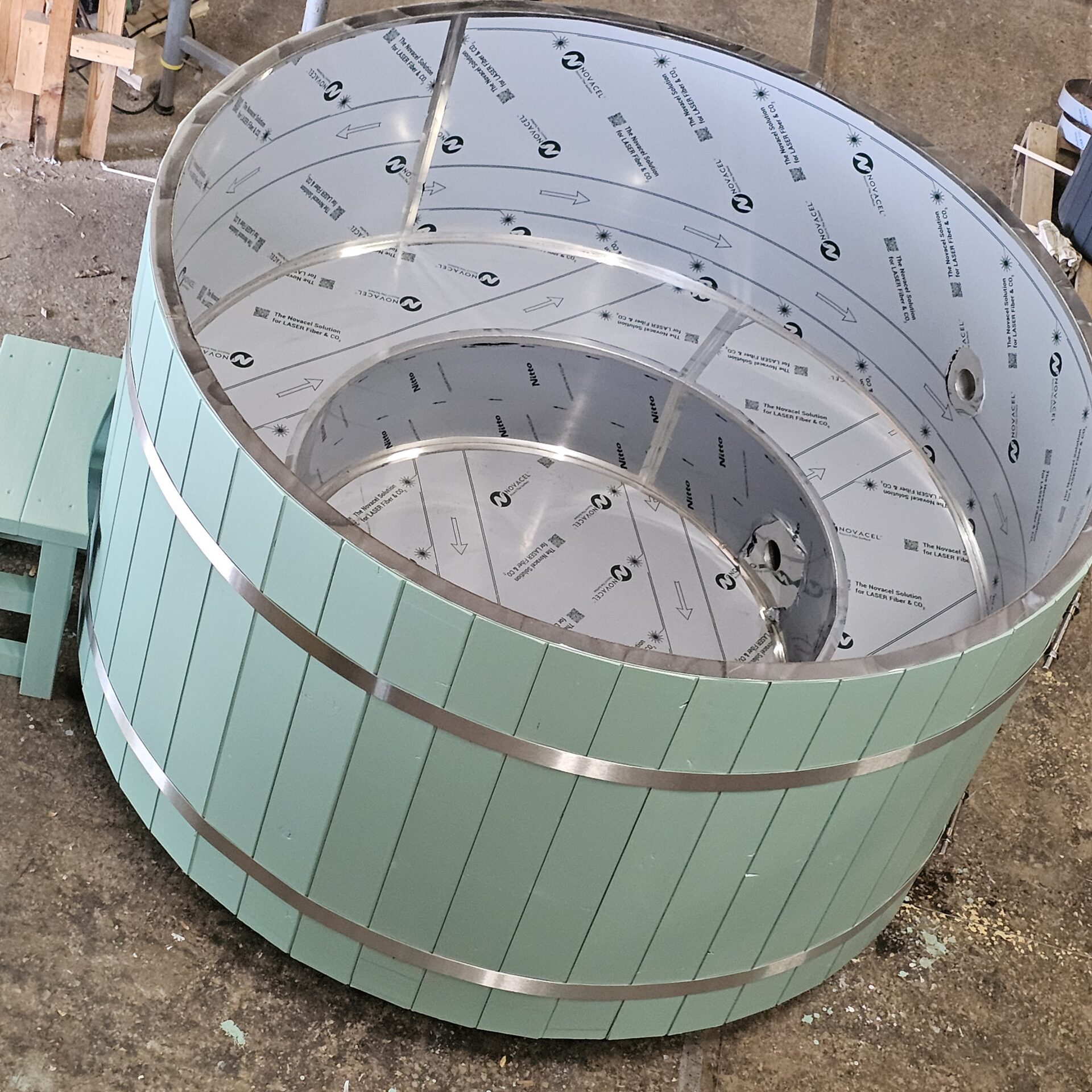 - Helppohoitoinen kylpytynnyri AISI304- tai haponkestävä AISI316- rosterisisulla, lämpöpuu- tai kuusivuorauksella. Sivulaudat ja pohja 43 mm;