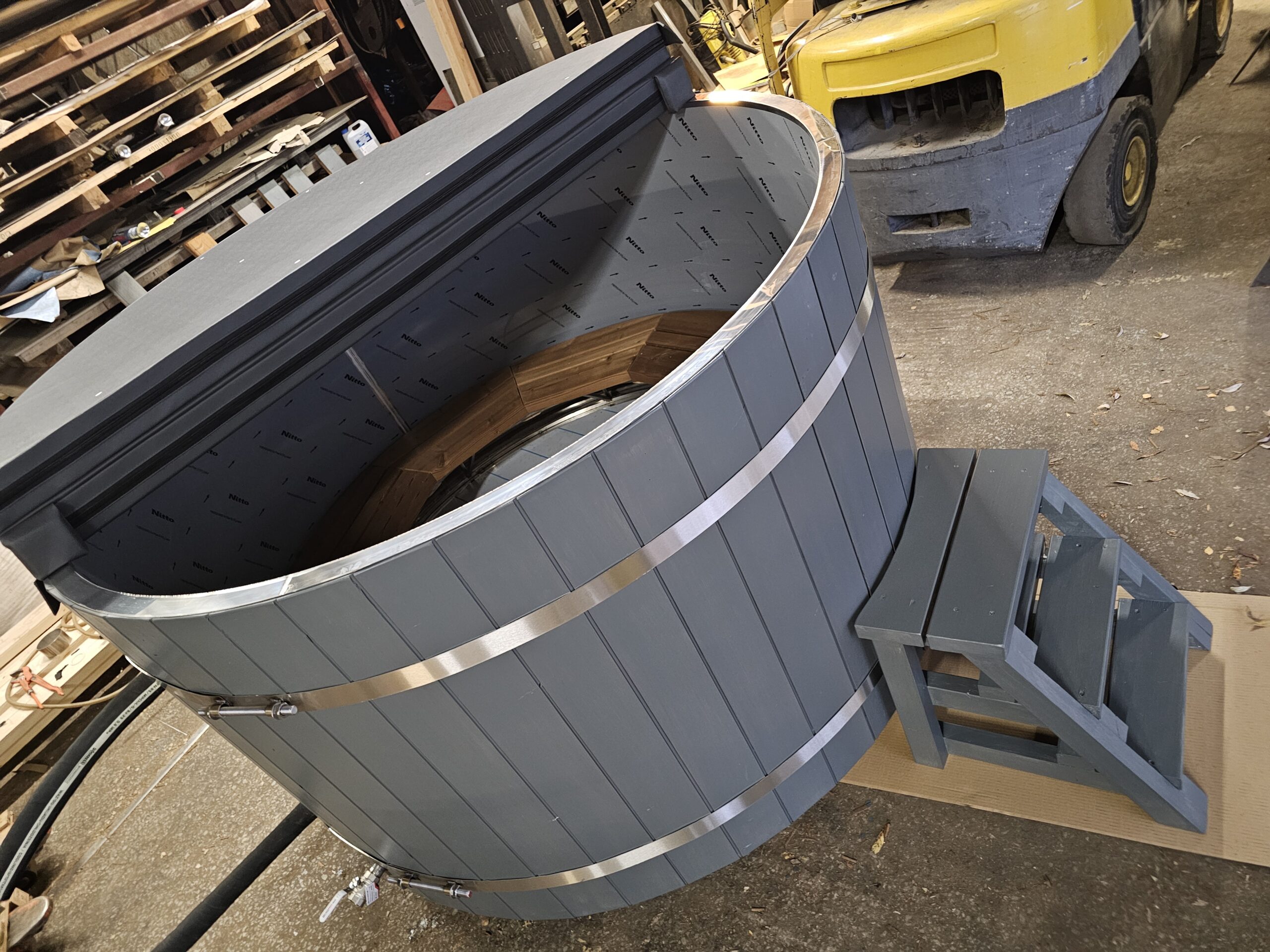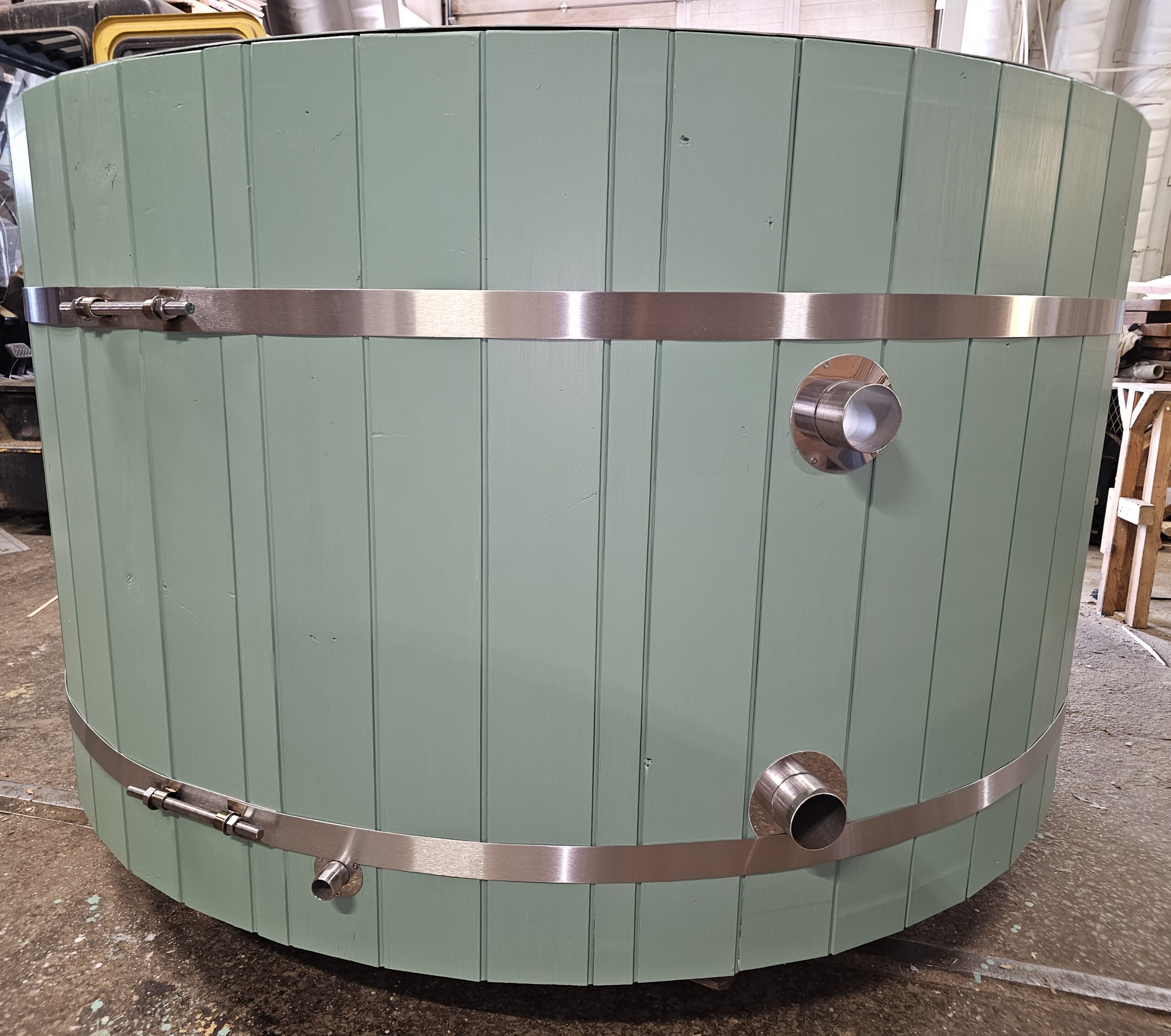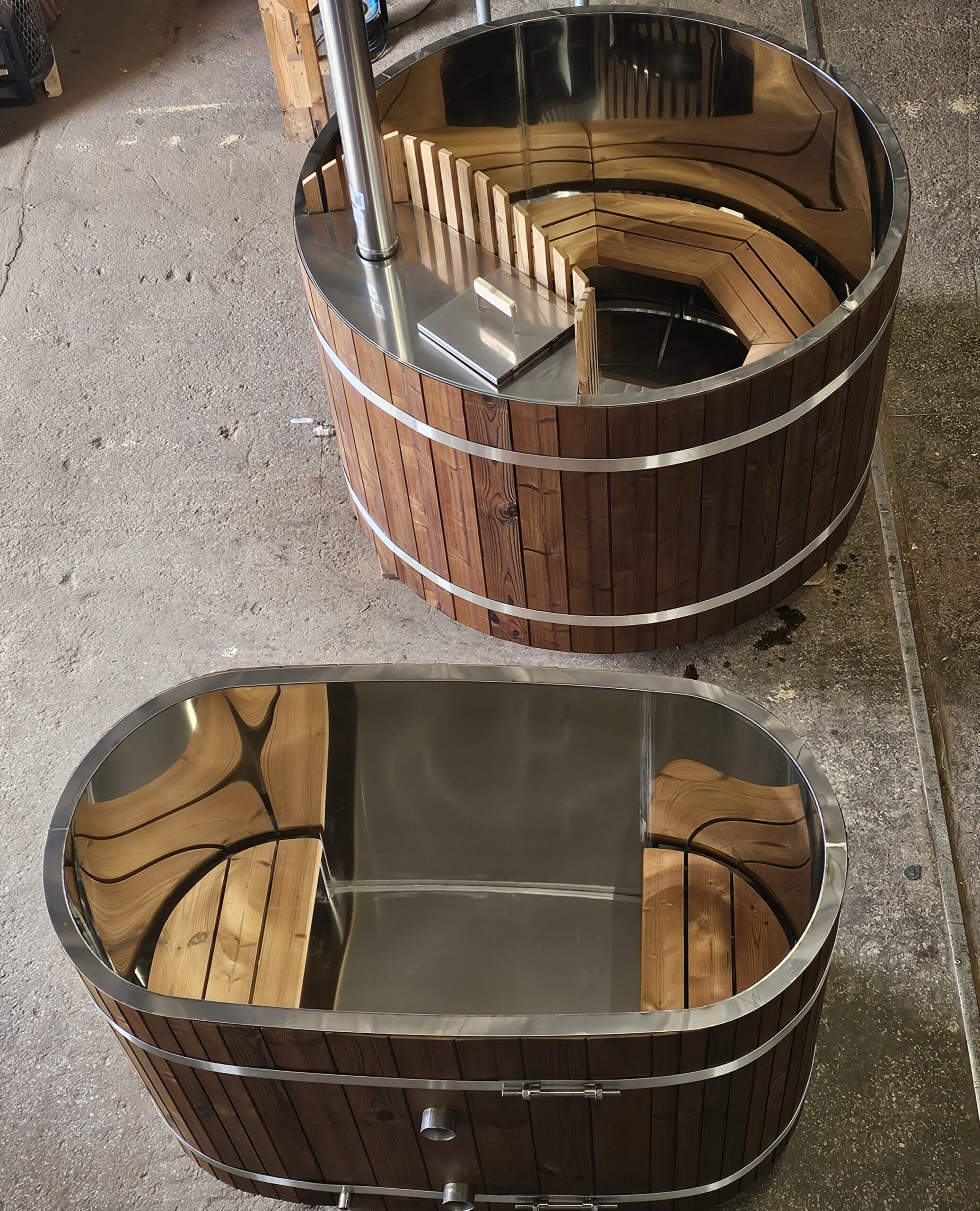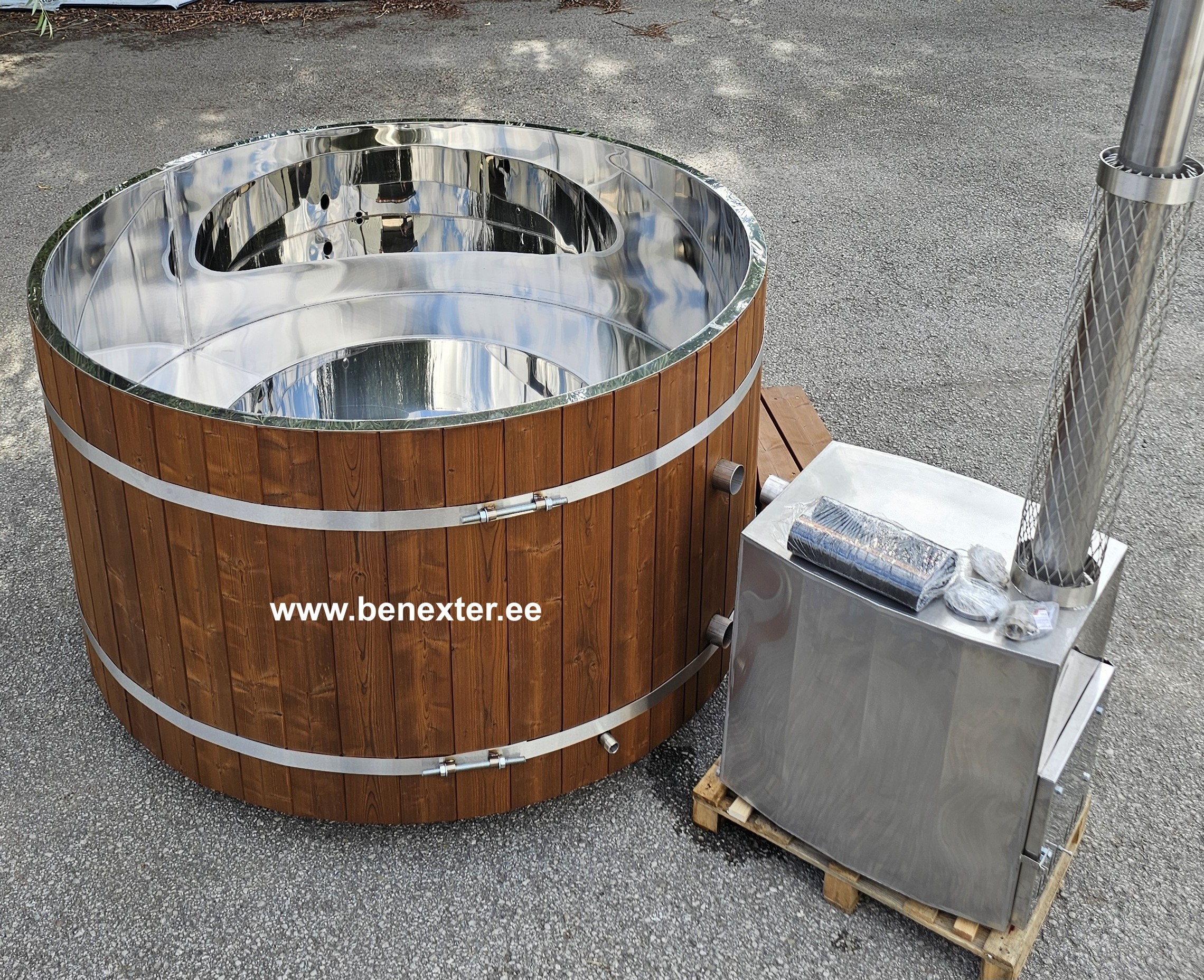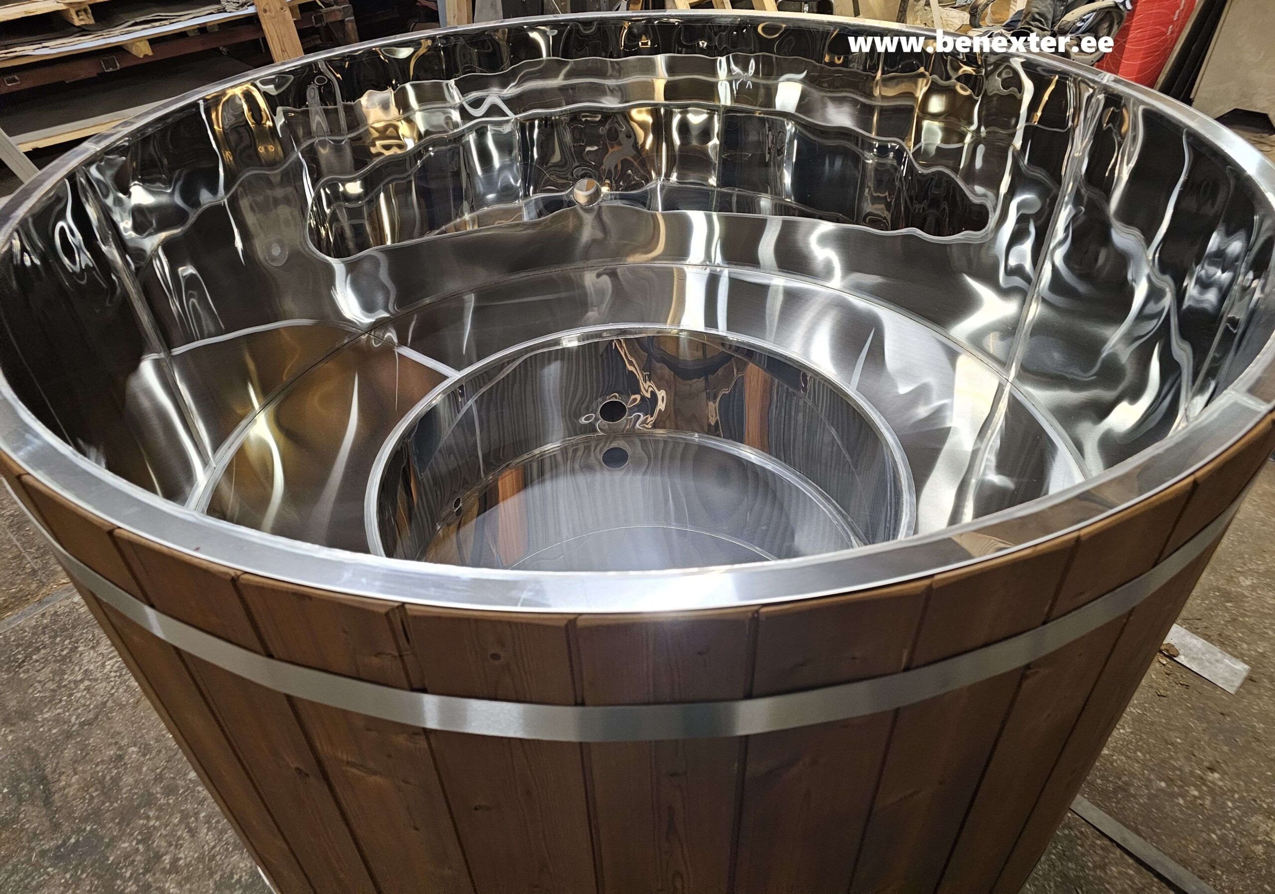 - Helppohoitoinen kylpytynnyri AISI304- tai haponkestävä AISI316- rosterisisulla, lämpöpuu- tai kuusivuorauksella. Sivulaudat ja pohja 43 mm;